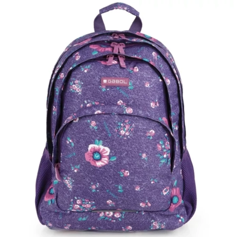Iskolatáska lila színben, romantikus mintával, mely visszafogott stílusú, mégis csodaszép. Állítható, szivacsos vállpánttal, és hátrésszel rendelkezik. A vállpánt nem vágja gyermeked vállát, a hátrész ergonomikus kialakítása nem terheli meg a gerincét. Kényelmesen viselhető még telepakolt állapotban is, így nemcsak iskolatáskának, de kirándulásra de is remekül használható! Minőségi alapanyagokból készült, melyek biztosítják tartósságát, és több éves használhatóságát.