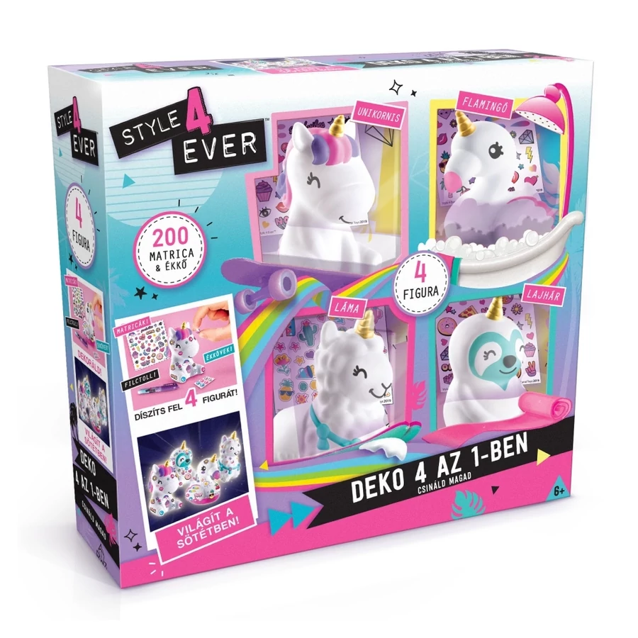 Készíts négy egyedi unikornis kedvencet magadnak ezzel a Deko 4 az 1-ben kreatív szettel. Egyszavú lovat már mindenki látott, de unikornis flamingóval, lámával vagy lajhárral találkoztál már?